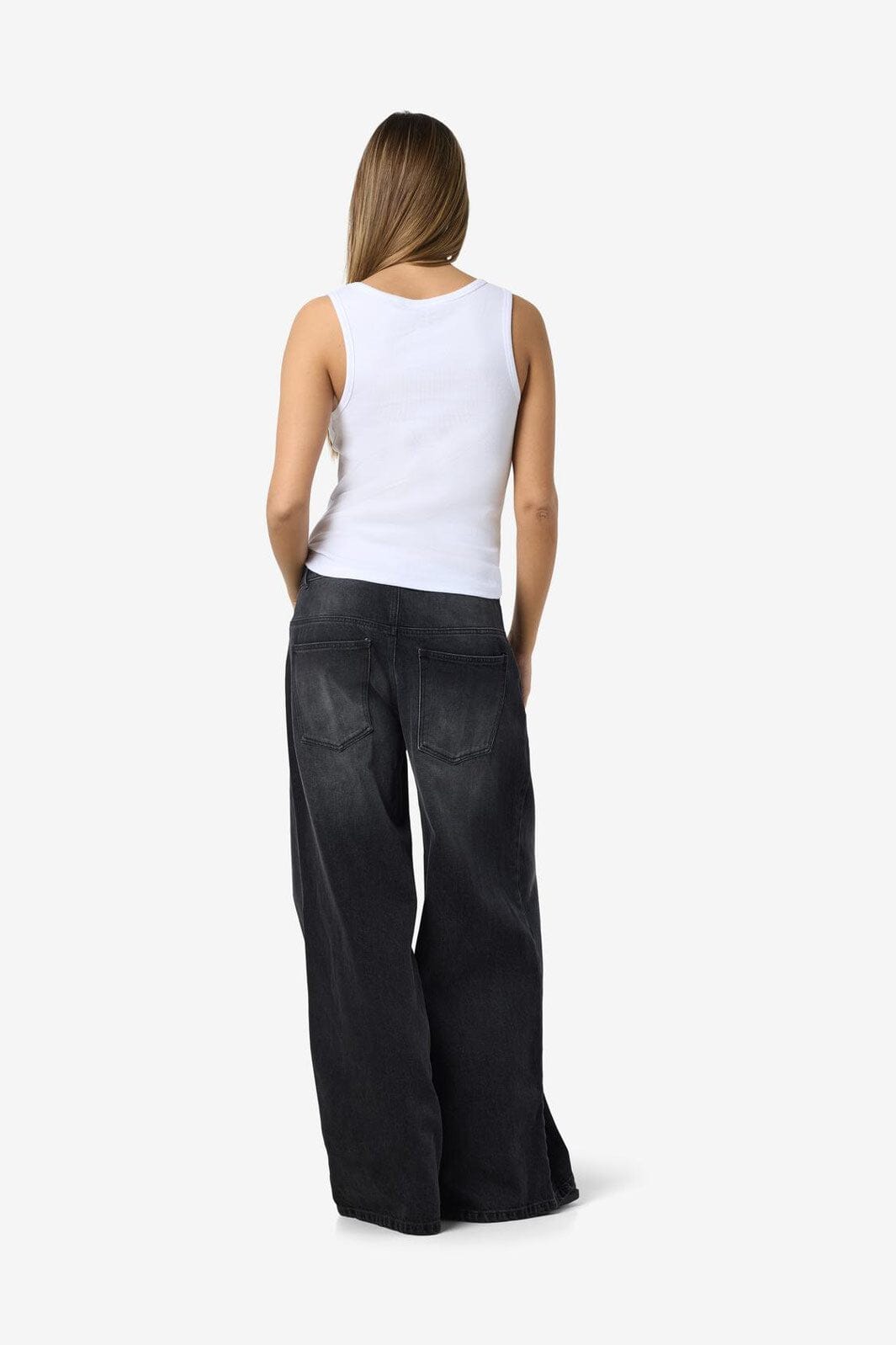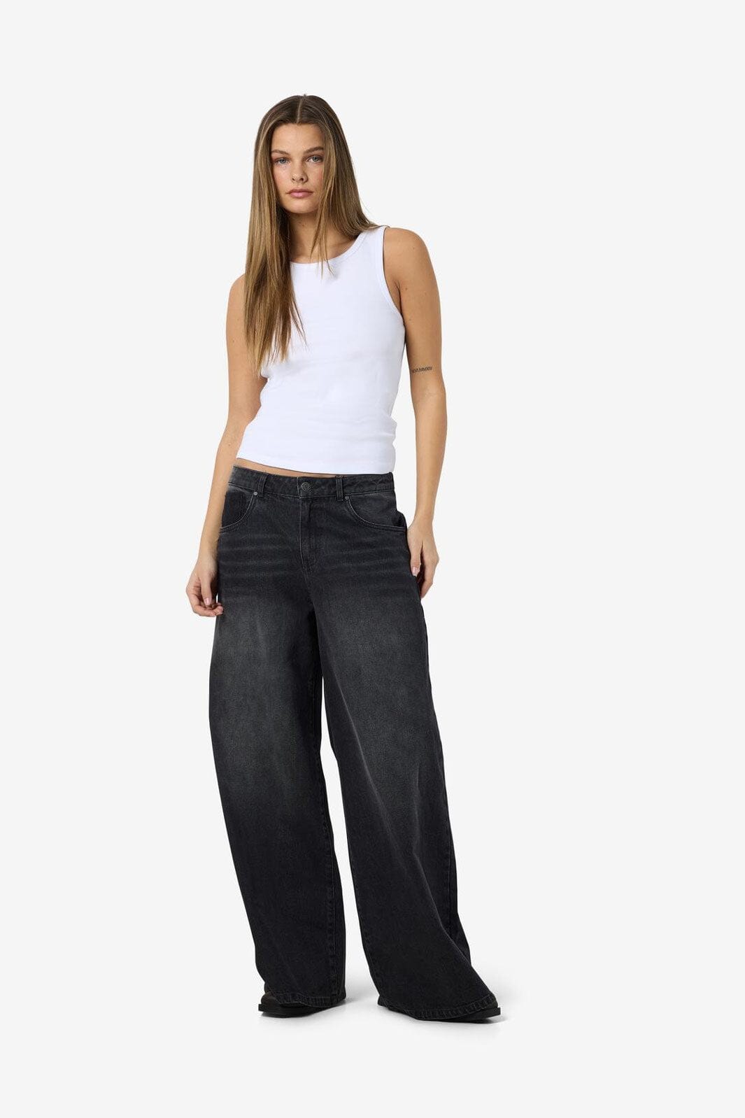 Noisy Mayn tanktoppi valkoisena. Tiukka toppi, jossa on pyöreä kaula-aukko ja hihaton muotoilu, mikä tekee siitä helpon yhdistää sekä yksin että muiden vaatteiden alle.