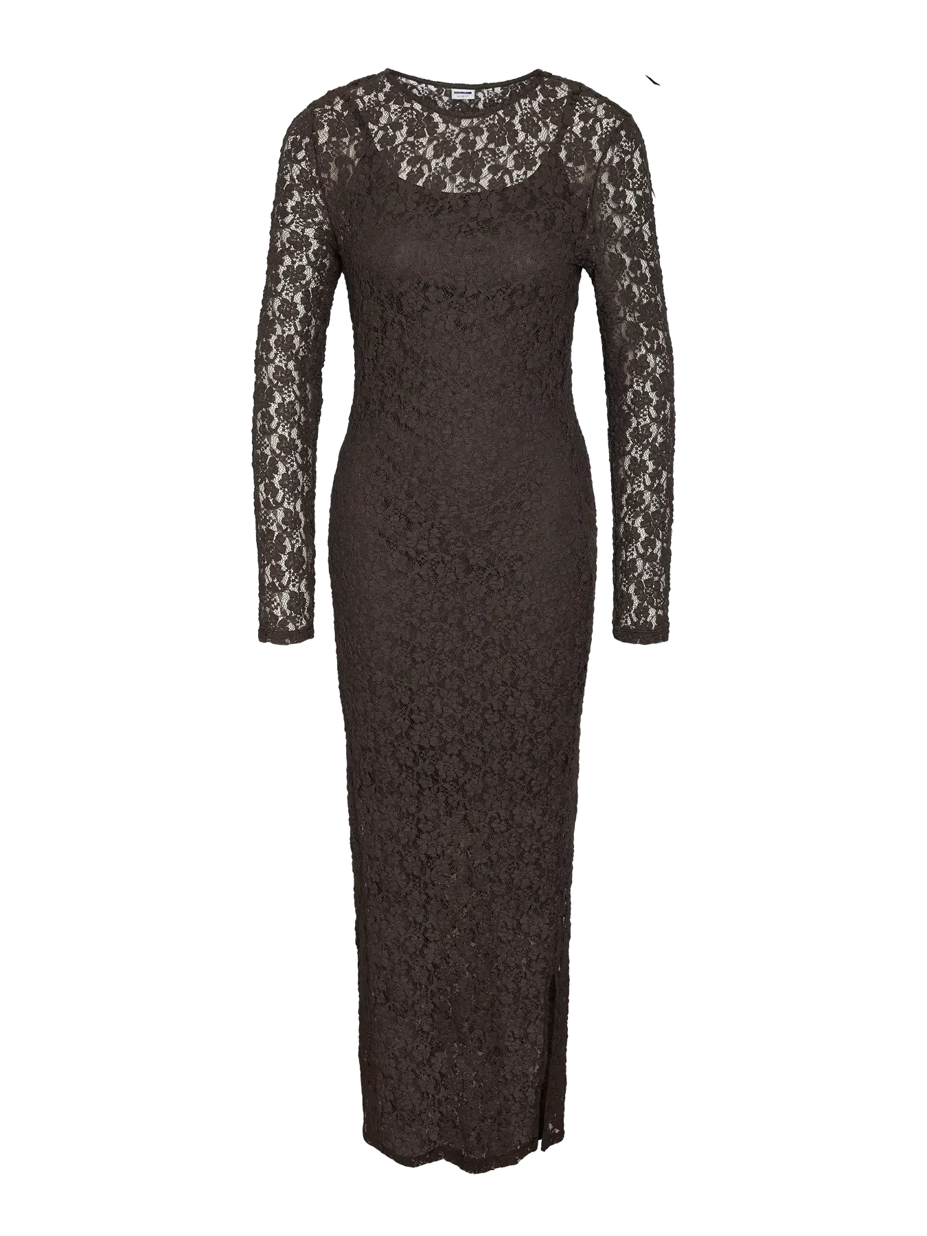 Noisy May Nmmiriam L/S Maxi Lace Dress Väri: 5064757 Chocolate Brown