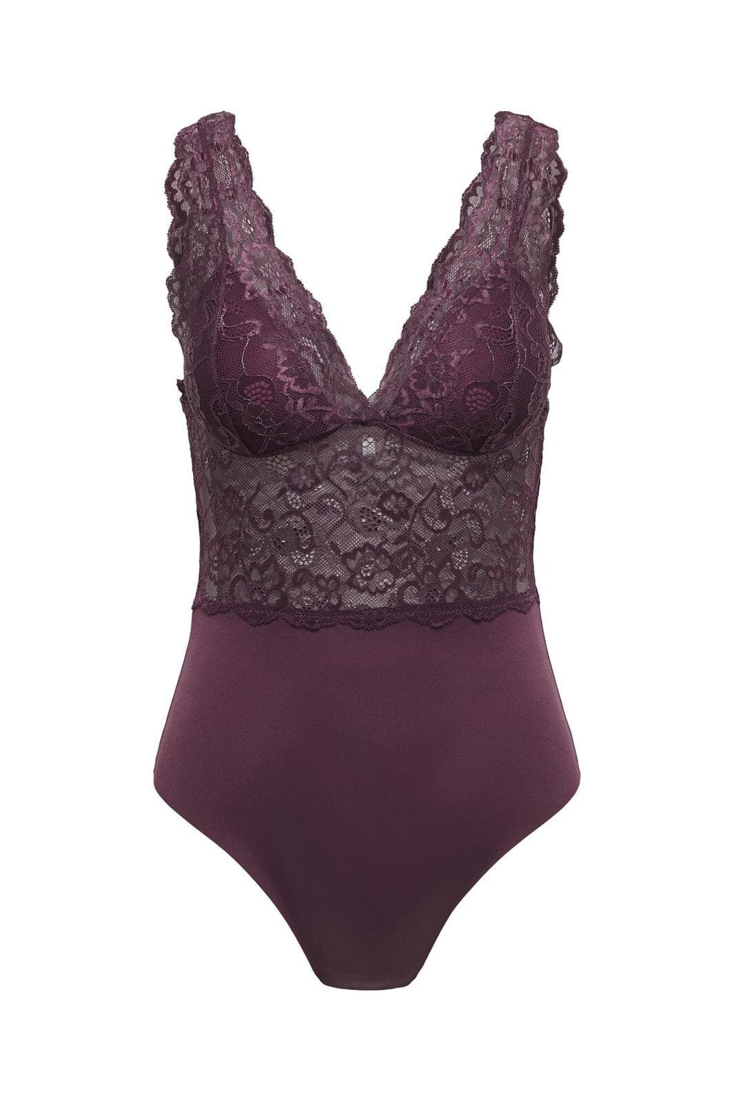 Only Onlchloe Glitter Lace Bodystocking Acc Väri: 4868948 Winetasting Silver-Lurex