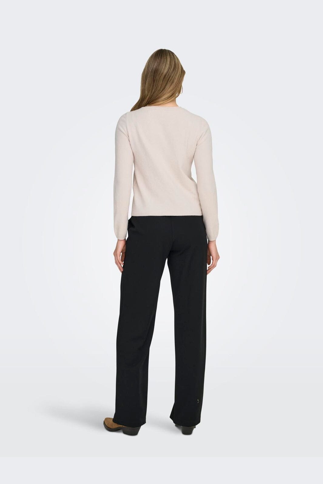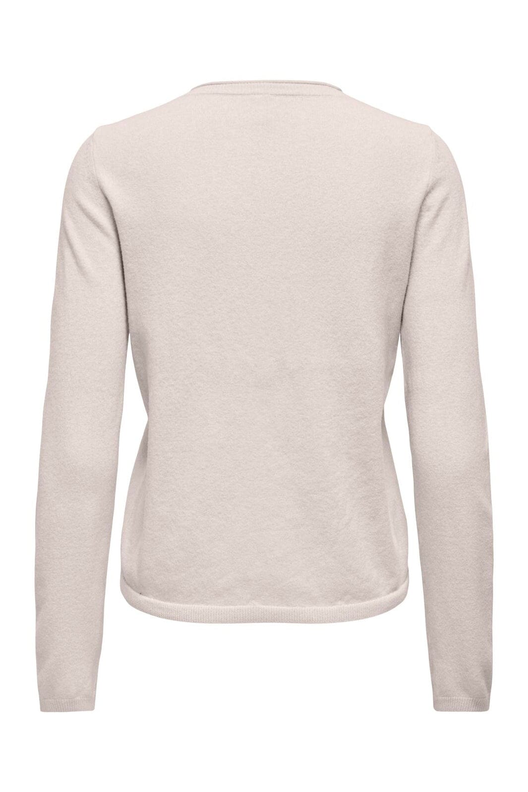 Vaalea cardigan Onlyltä beigen sävyssä. Cardiganissa on pitkät hihat, pyöreä kaula-aukko ja nappikiinnitys edessä.