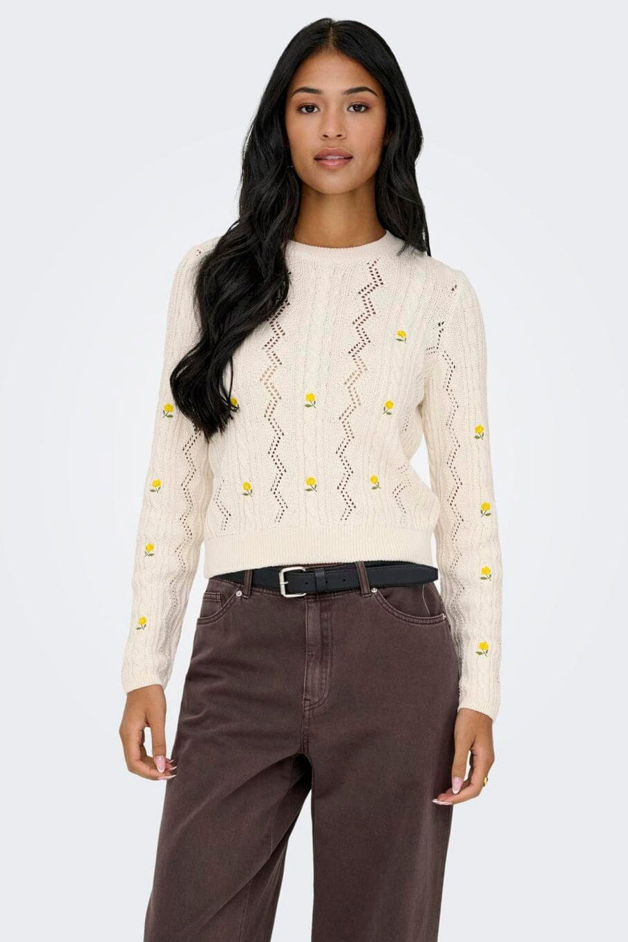 Only Onlrita Life Ls Embr Cable Knt Väri: 4862605 Ecru Yellow Flower