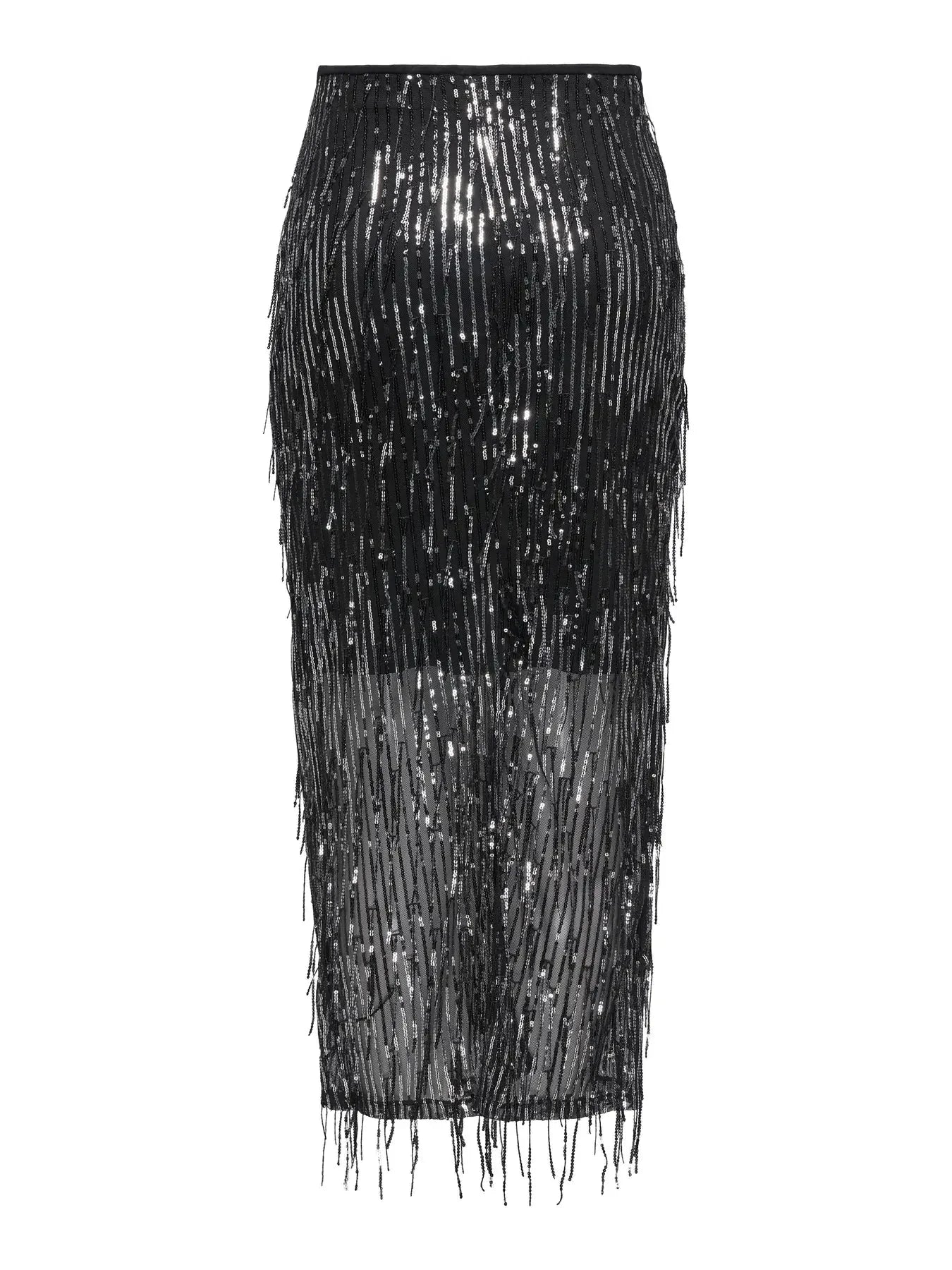 Only Onlspacy Long Sequins Skirt Väri: 4877211 Black W. Silver Sequins