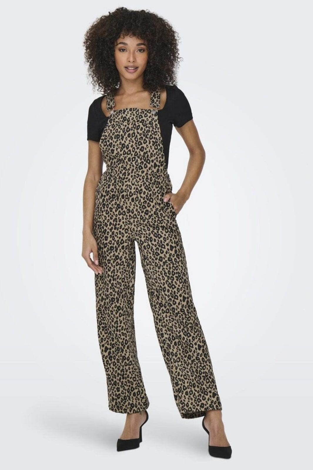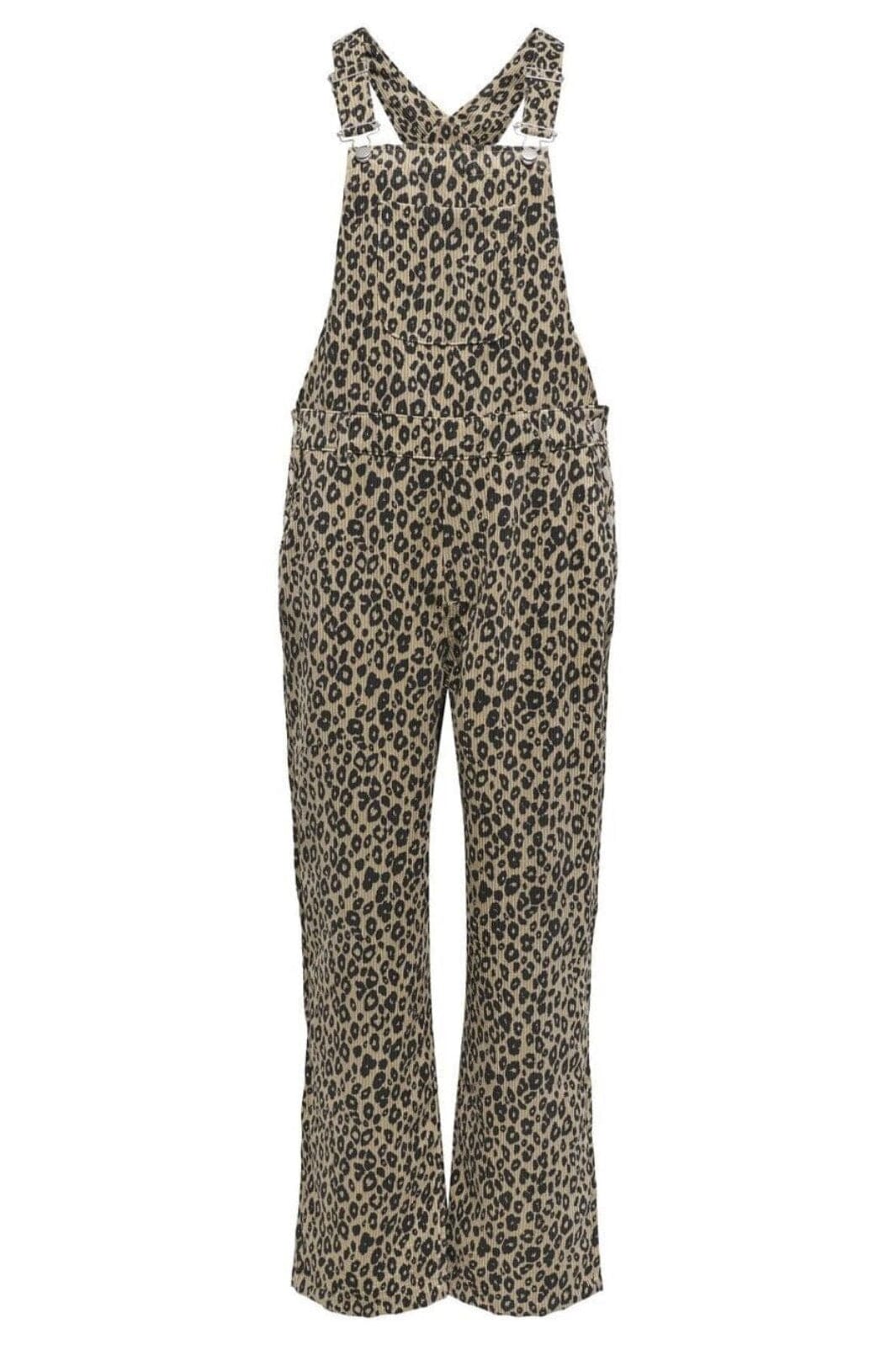 Onlyn haalari beigen ja ruskean leopardikuosisena. Rentomalli on varustettu säädettävillä olkaimilla, joissa on metalliklipsit, ja sivunapeilla sulkemista varten.