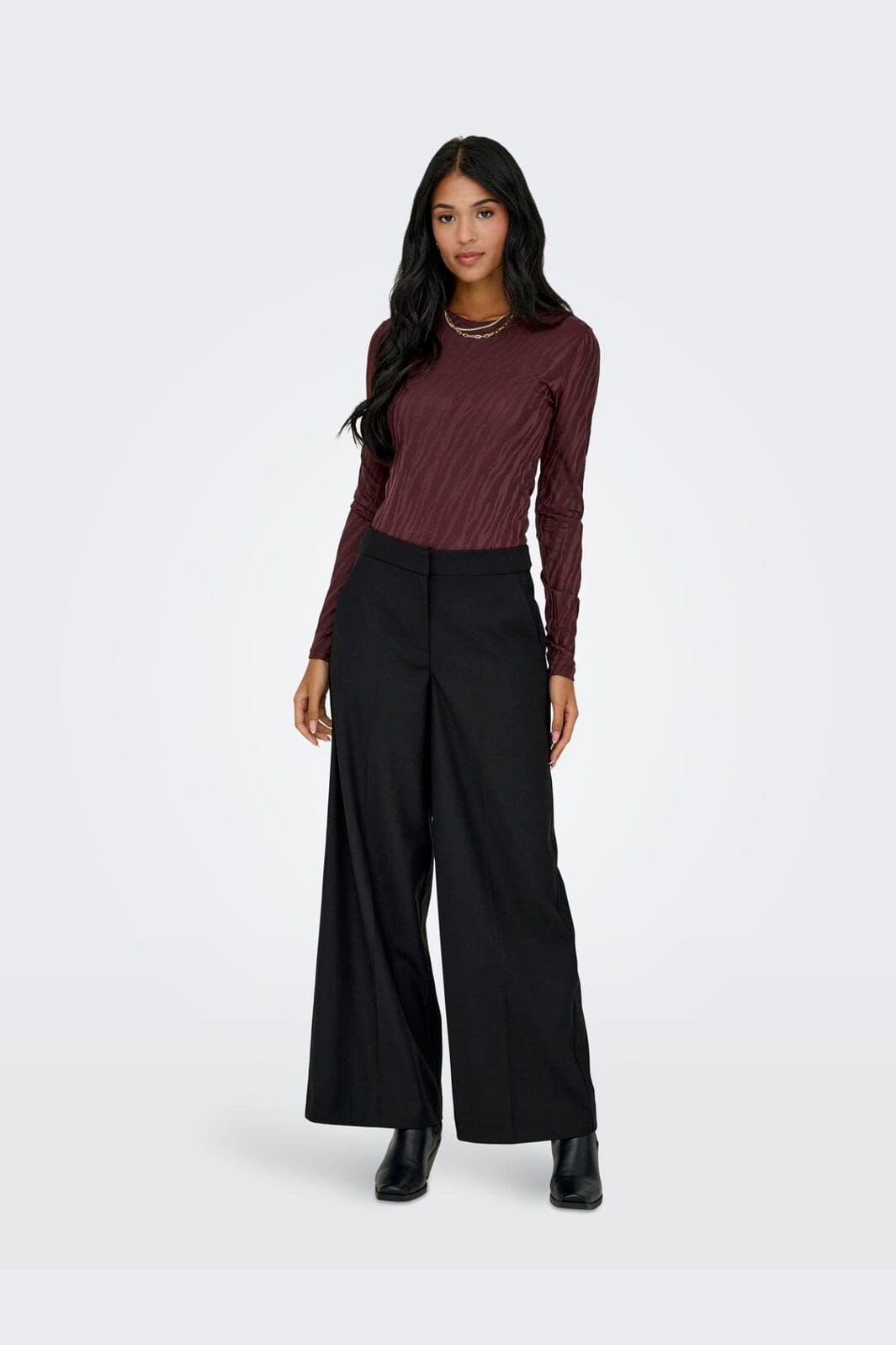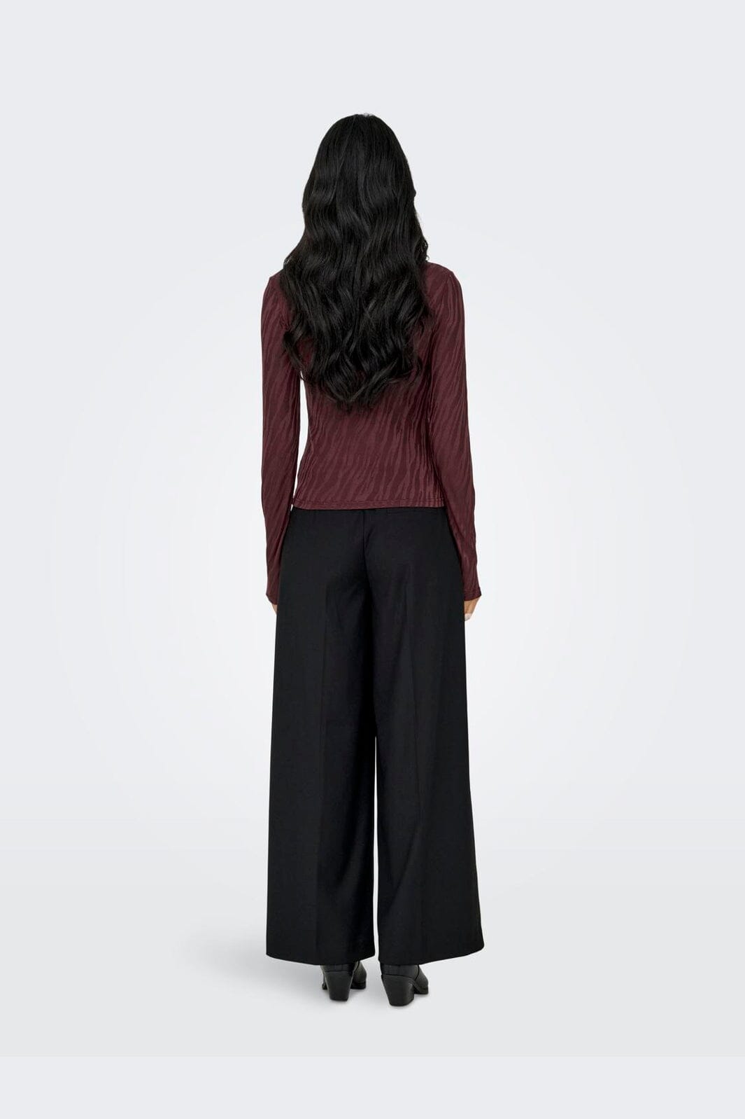 Pitkähihaista toppia Onlyltä, jossa on seepra-printti tummassa suklaavärissä. Topissa on pyöreä kaula-aukko ja slim fit -malli, joka antaa tiukan siluetin.