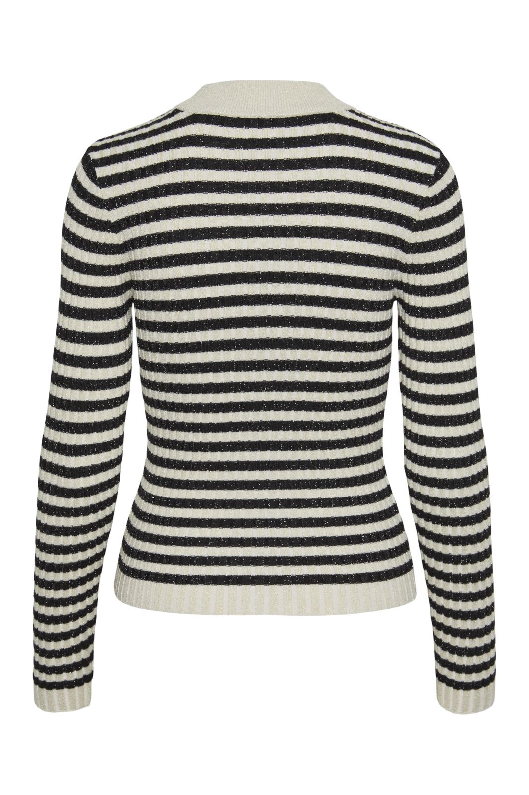 Pieces Pccrista Ls Lurex O-Neck Knit Mm Väri: 4546398 Birch Black Stripes / Gold Lurex