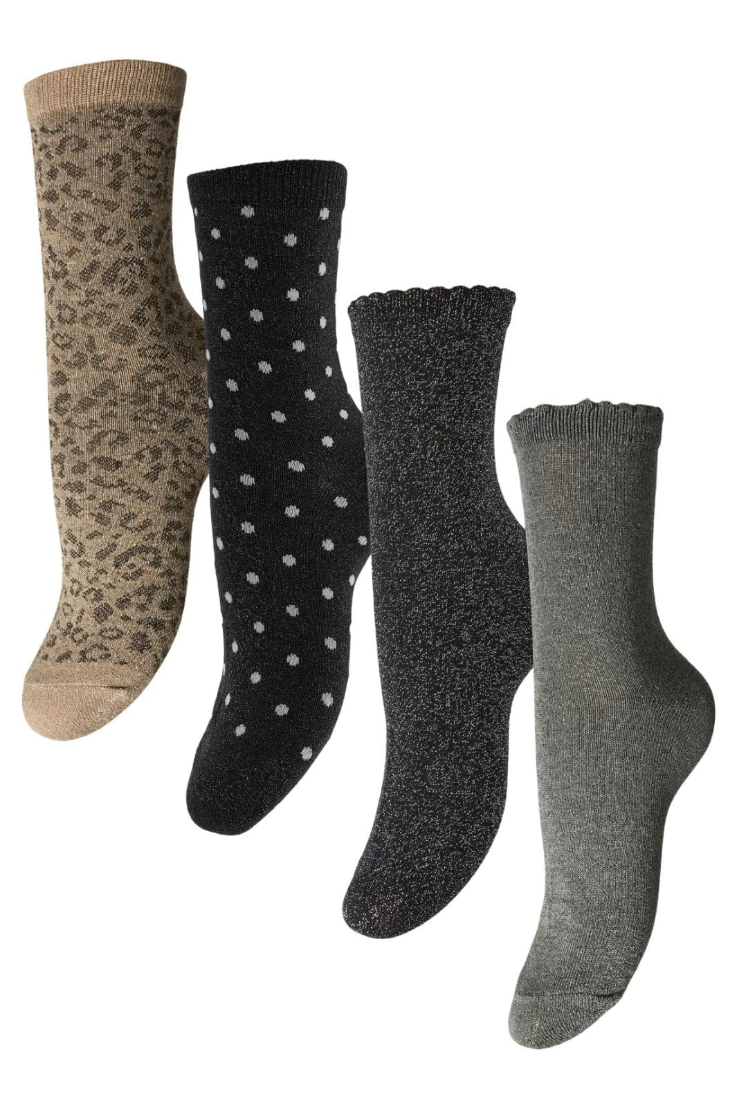 Pieces Pcsebby Glitter Long 4-Pack Mix Väri: 4866196 Deep Lichen Green 4-Pack Deep-Blcsil-Blcdot-Taupleo