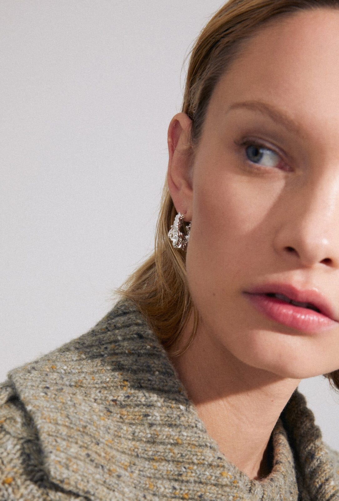 Pyöreät hoop-korvakorut Pilgrimiltä, joissa on kierretty pinta. Korvakorut ovat hopeapinnoitettuja ja niissä on rakenteellinen viimeistely, joka antaa niille erityisen ilmeen.