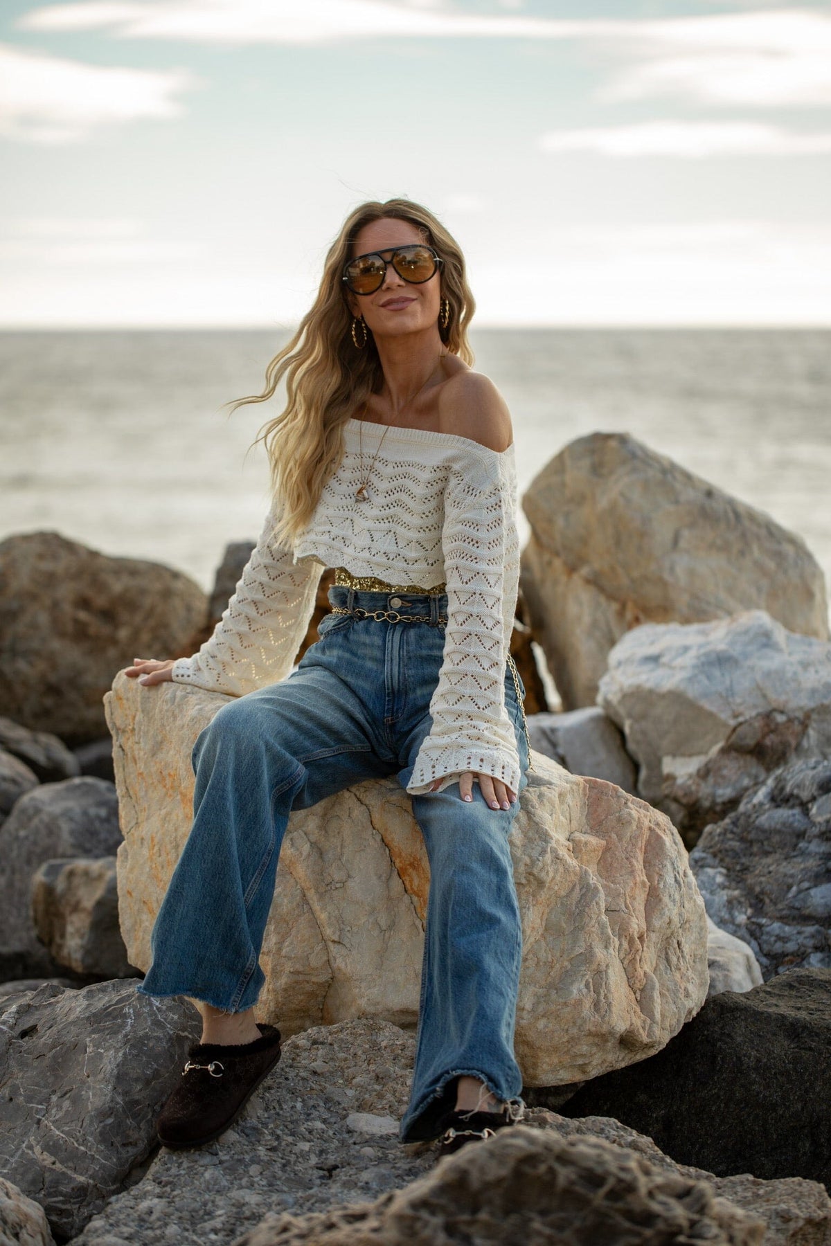 Rootedin kaulakoru, jossa on ohut kullanvärinen ketju ja useita riipuksia. Kaulakorussa on nyöririipus simpukoilla ja kullatuilla charmeilla.