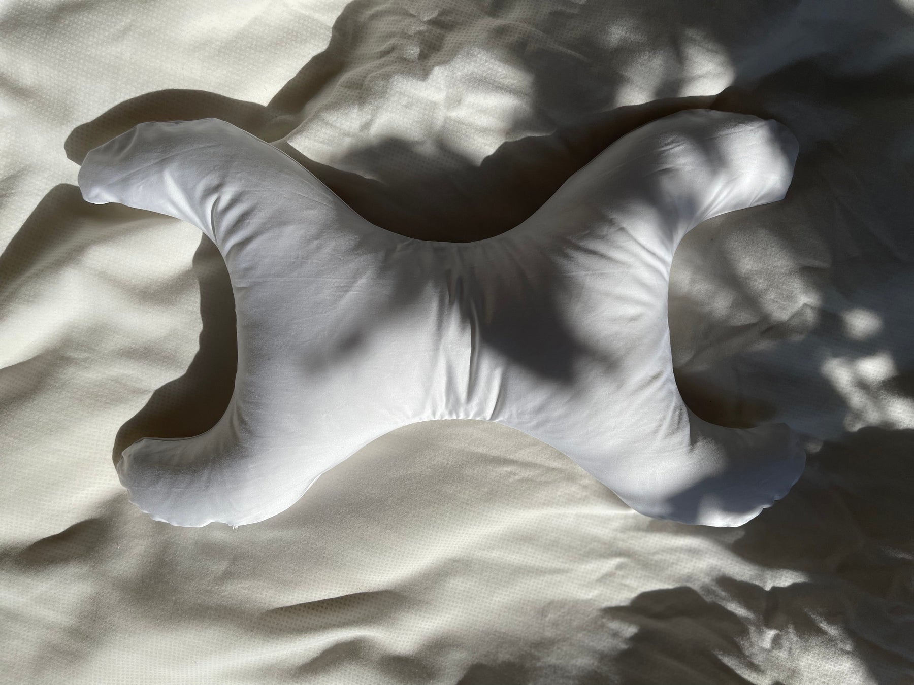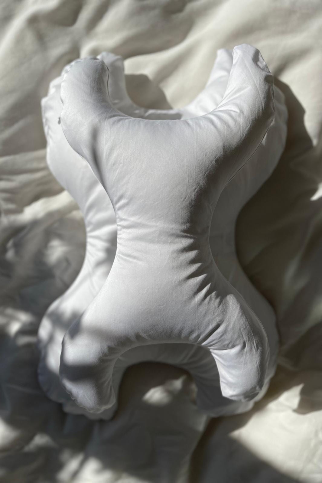Valkoinen tyynyliina Save My Facelta X-muotoisella designilla. Tyynyliina on valmistettu puuvillasta, jossa on 500 lankaa neliötuumaa kohti, ja siinä on erityinen helmikudos.