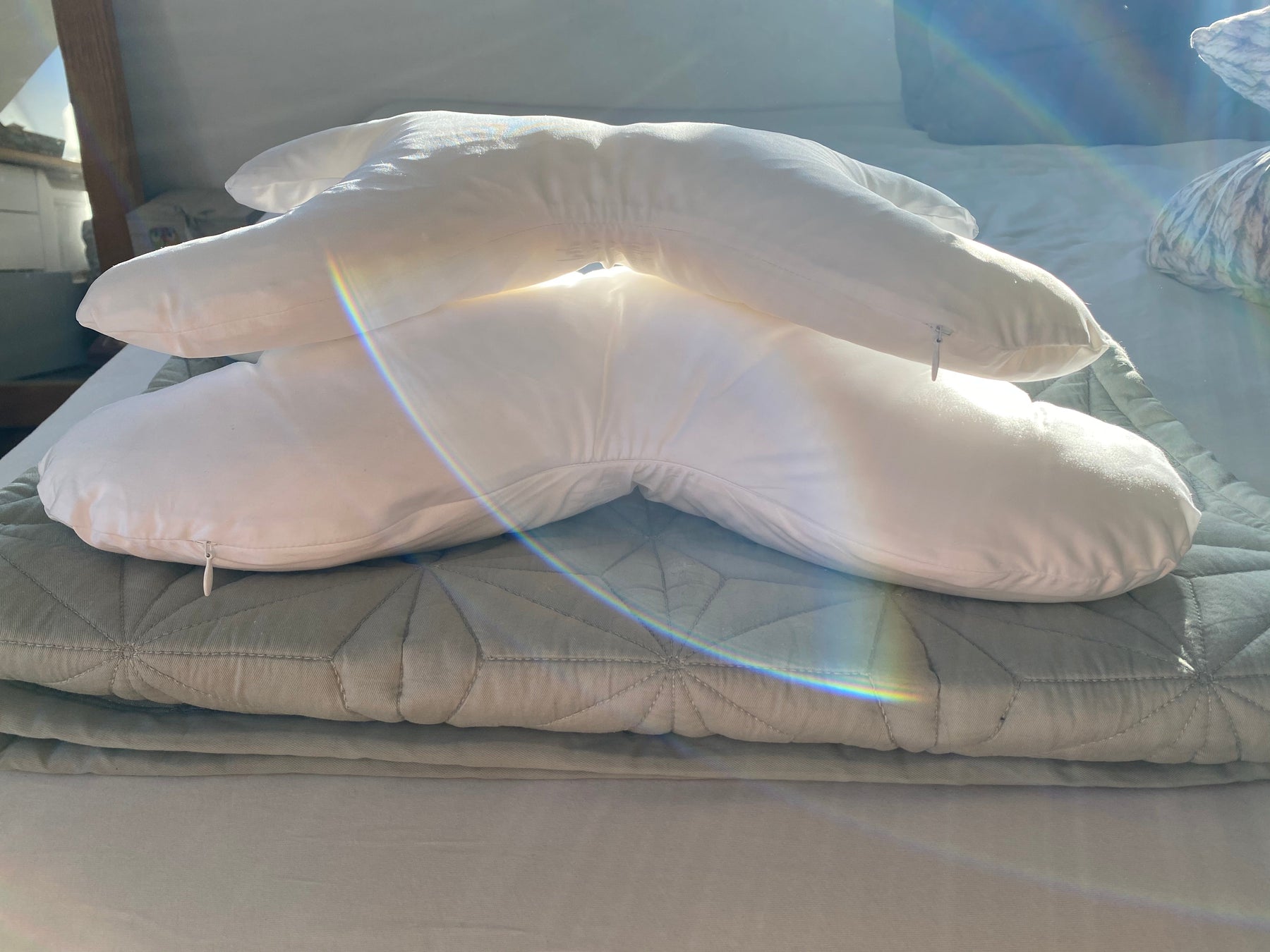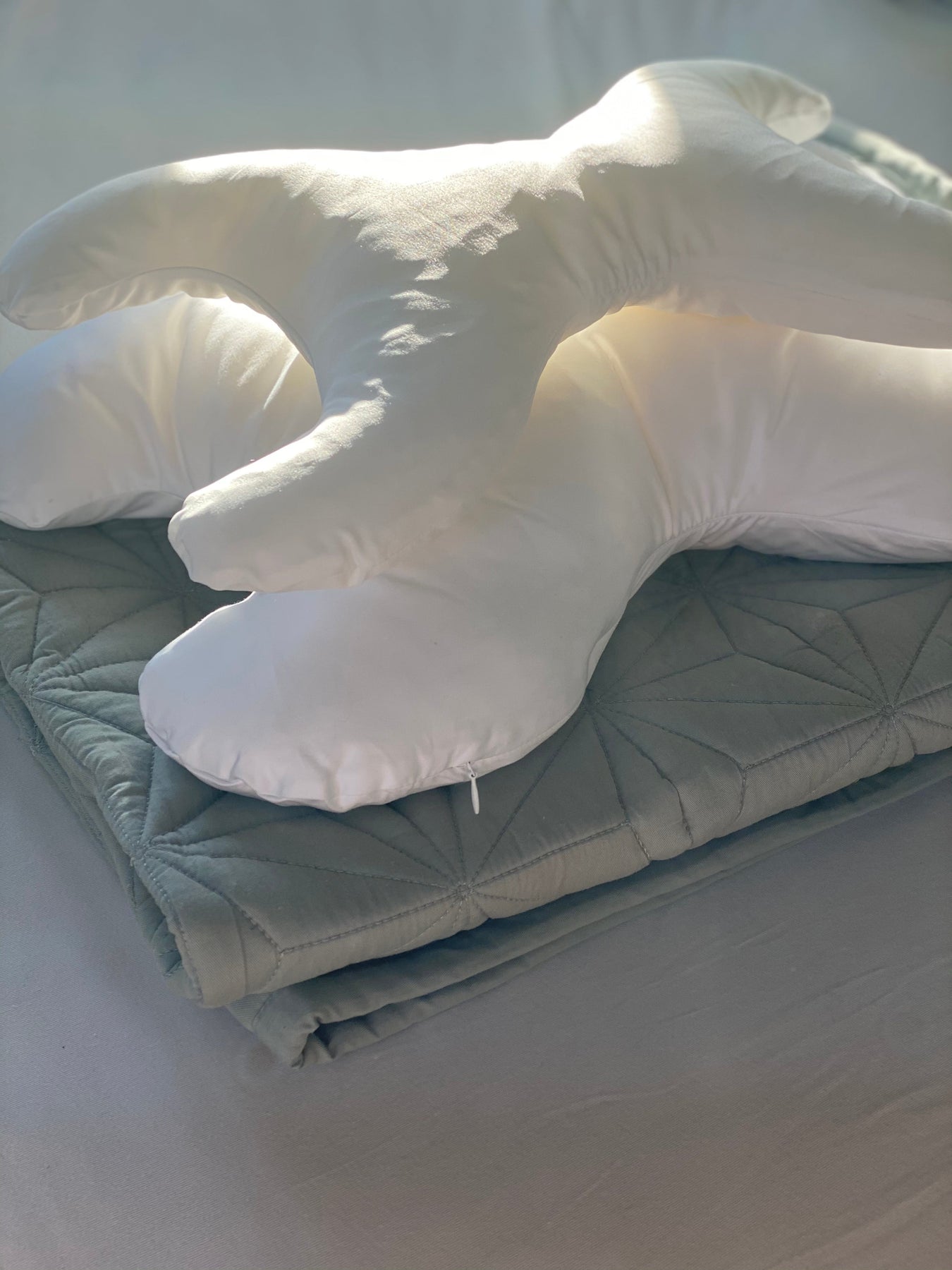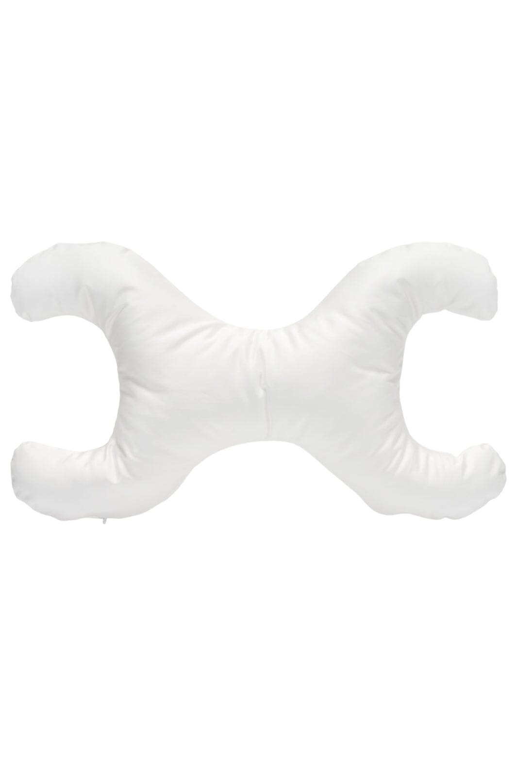Valkoinen tyynyliina Save My Facelta X-muotoisella designilla. Tyynyliina on valmistettu puuvillasta, jossa on 500 lankaa neliötuumaa kohti, ja siinä on erityinen helmikudos.