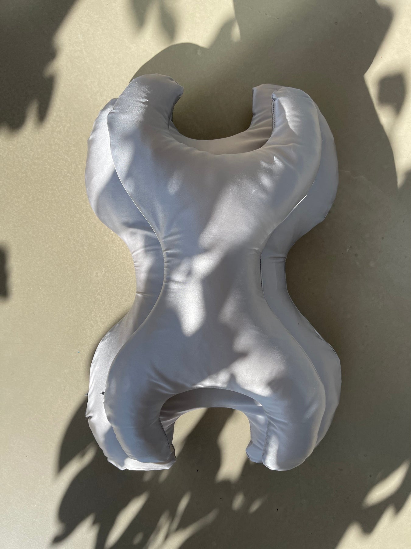 Valkoinen tyynyliina Save My Facelta charmeuse-silkistä, jossa on lämpötilan säätely- ja antiseptisiä ominaisuuksia. Tyynyliina on suunniteltu erityisesti Le Grand -tyynylle.