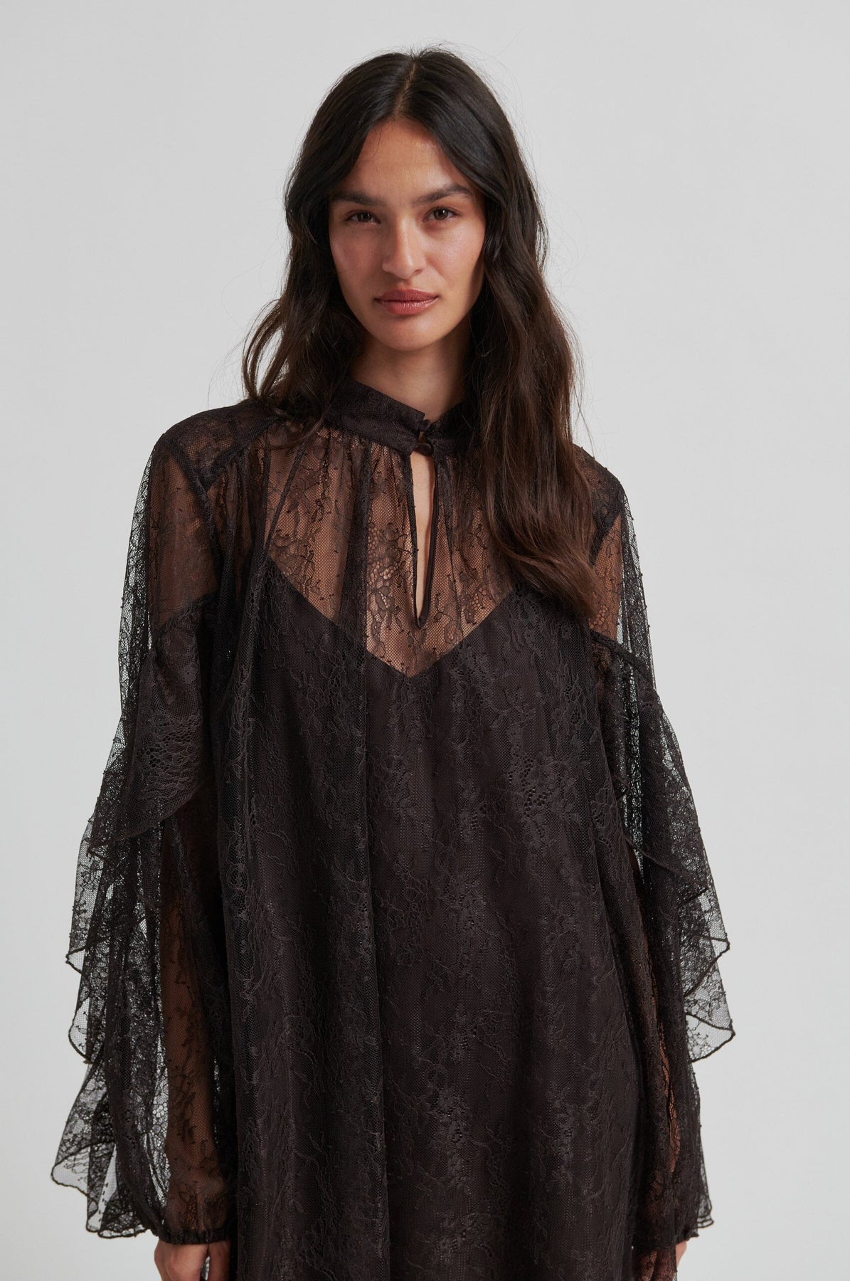 - Pitkät hihat röyhelöyksityiskohdilla