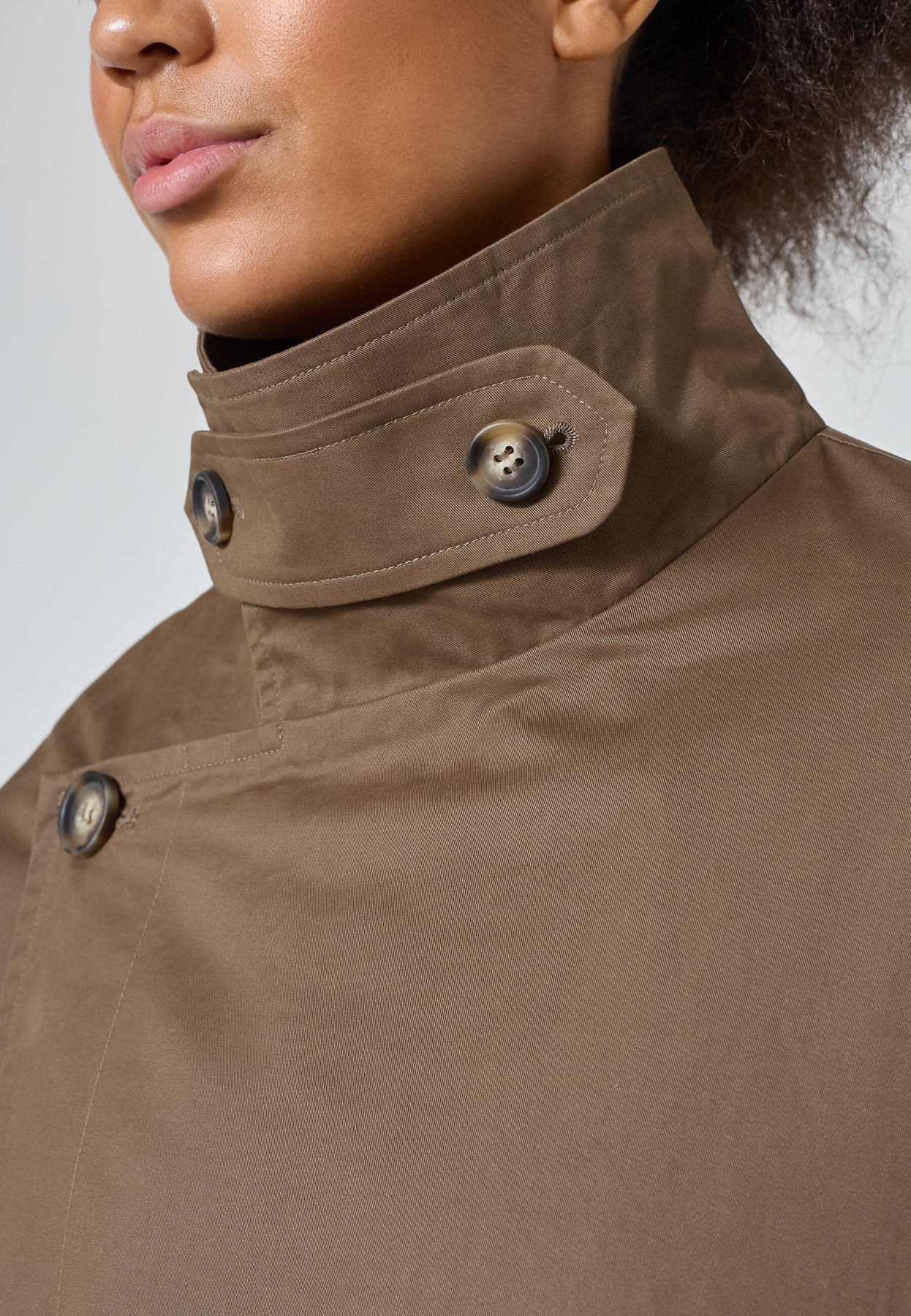 Pitkä, oversized-trenssitakki Sisters Pointilta ruskeassa sävyssä. Takki on valmistettu 100 % puuvillasta ja siinä on nappikiinnitys.