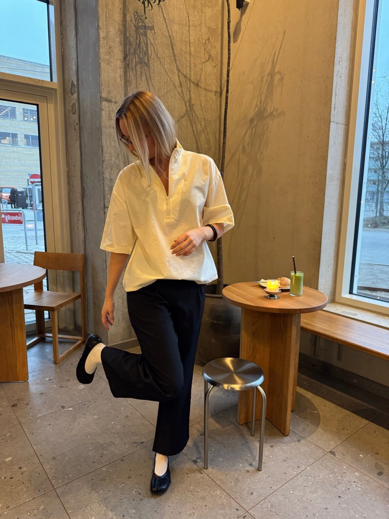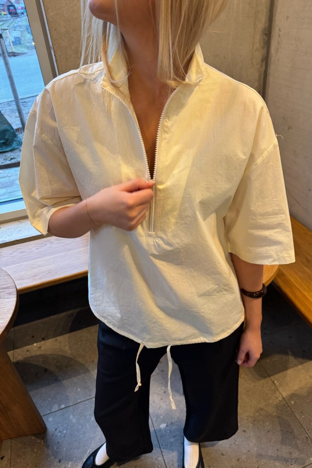 Kermanvärinen pusero Sisters Pointilta, valmistettu puuvillasta. Puserossa on väljä istuvuus, leveät hihat ja korkea kaulus.
