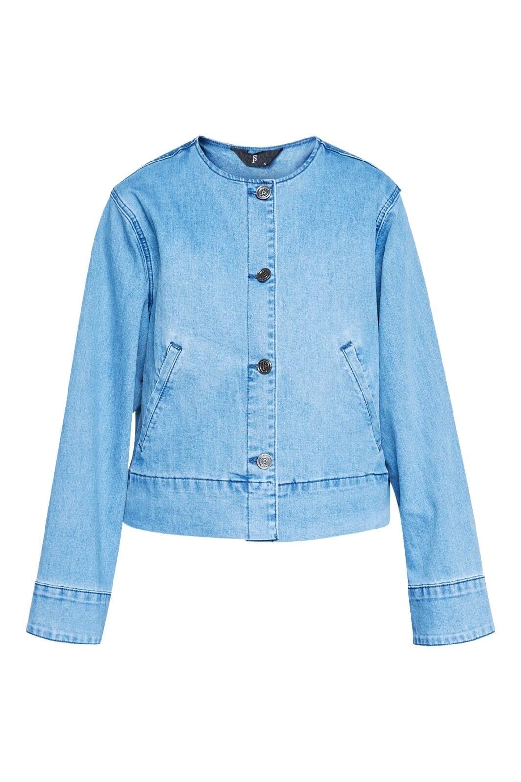 Denimtakki Sisters Pointilta vaaleansinisessä sävyssä. Takissa on pyöreä pääntie ja nappikiinnitys edessä sekä vinot taskut.