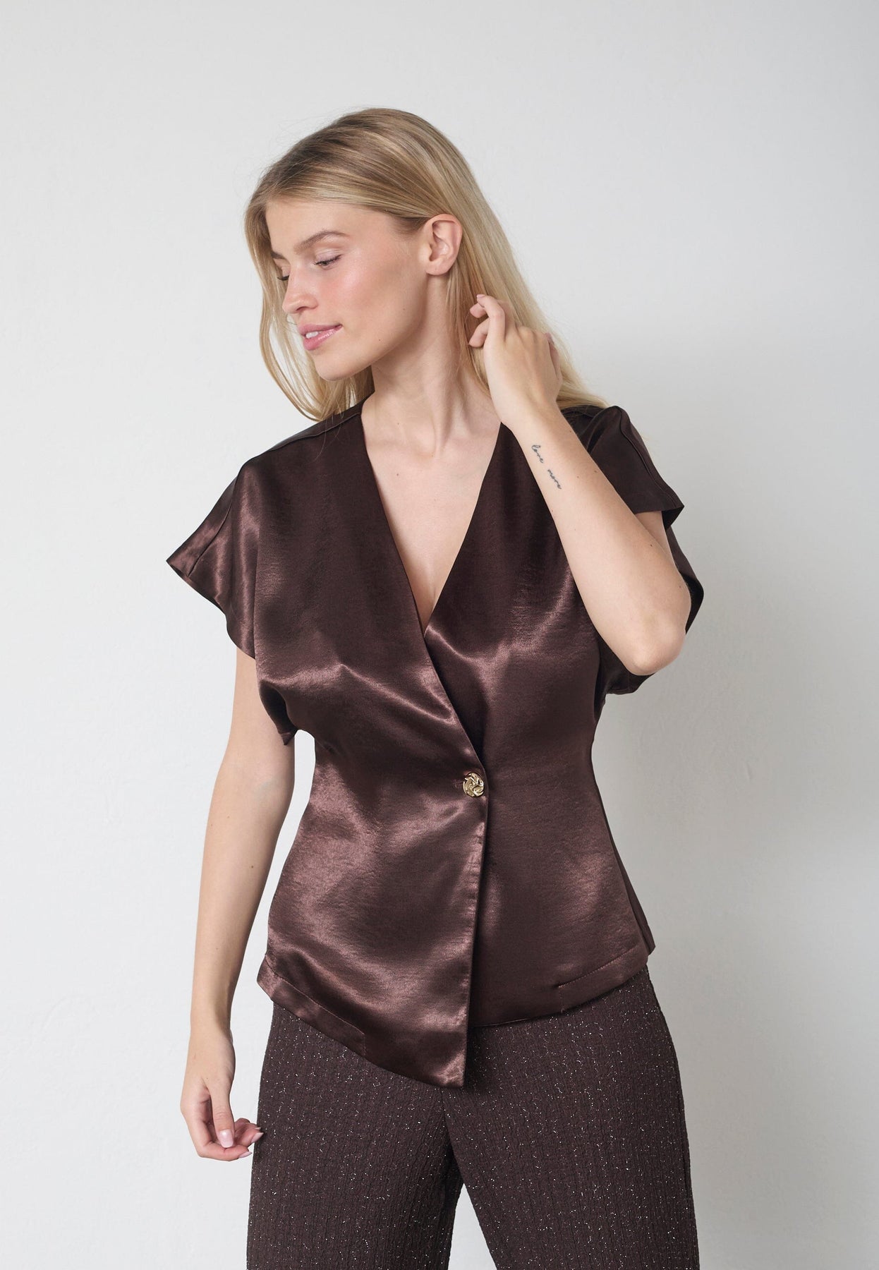 Ruskea toppi Sisters Pointilta, 100 % polyesteriä. Toppi sopii muodollisiin tilaisuuksiin ja juhlaviiin hetkiin.