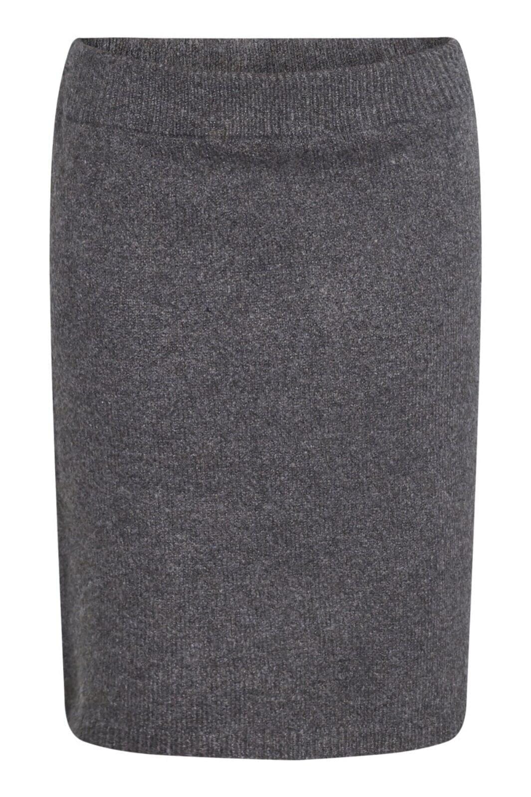 Neulottu hame Sisters Pointilta ruskeana meleeratulla kuviolla. Neulottu tekstuuri antaa hameelle rustiikkisen ilmeen.