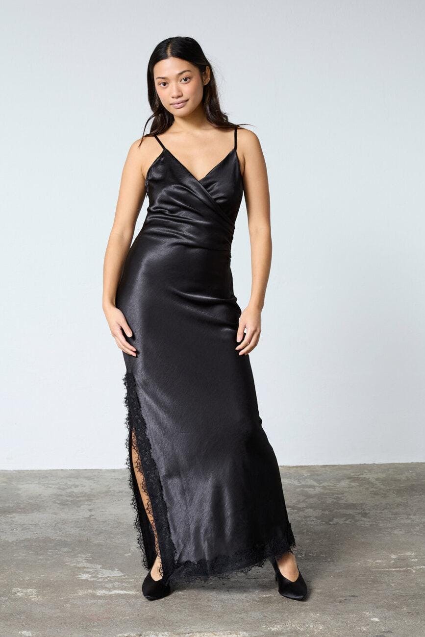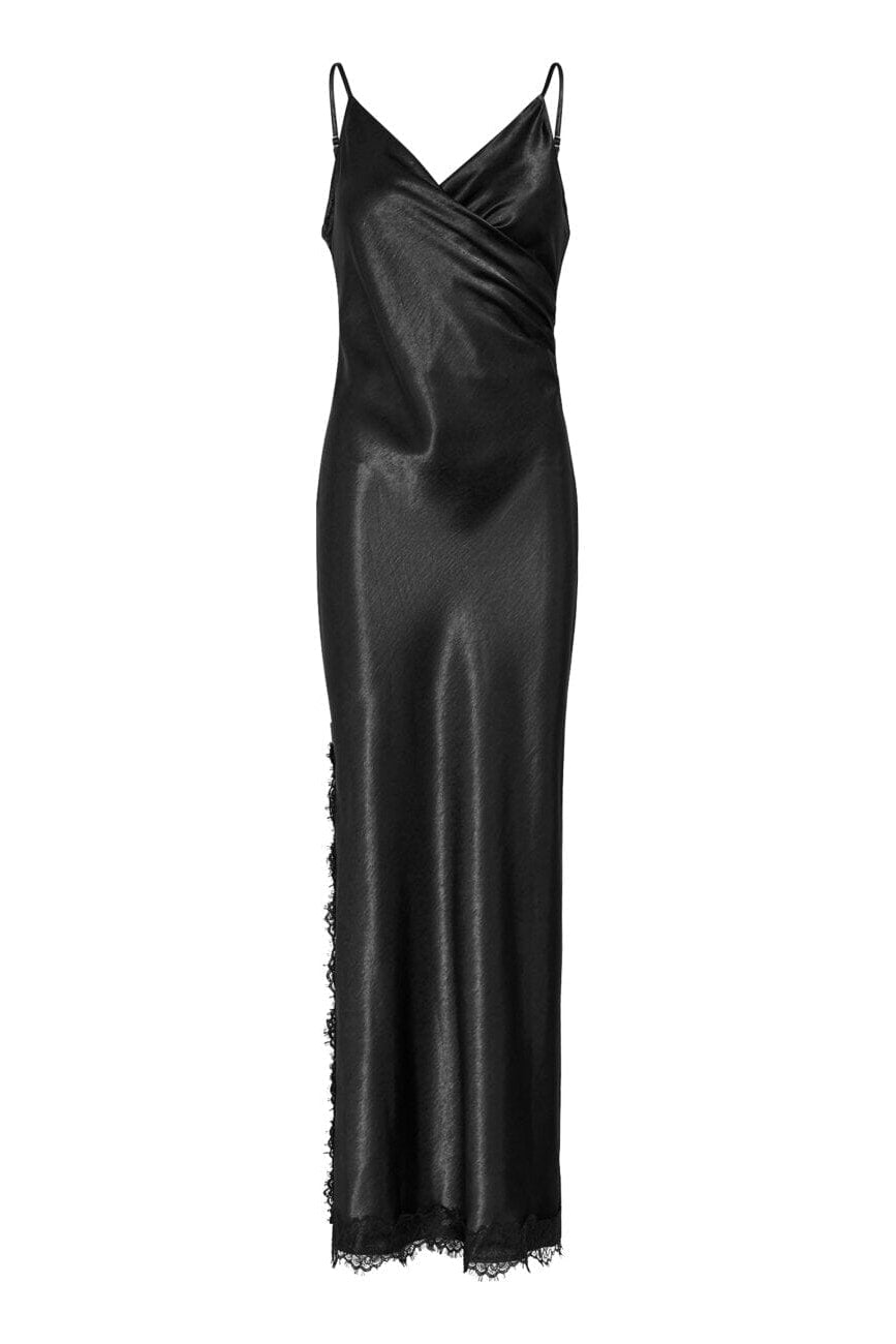 Musta mekko Sisters Pointilta juhliin ja virallisiin tilaisuuksiin. Mekossa on satiinimainen ilme pitsillä ja kapea istuvuus.