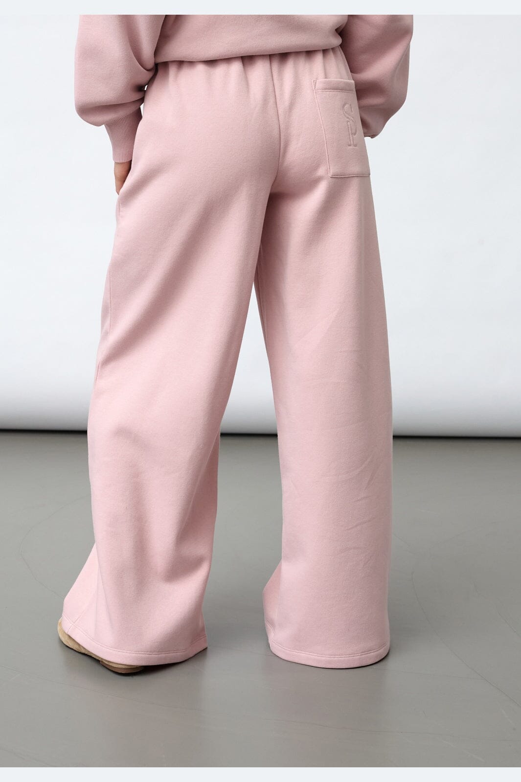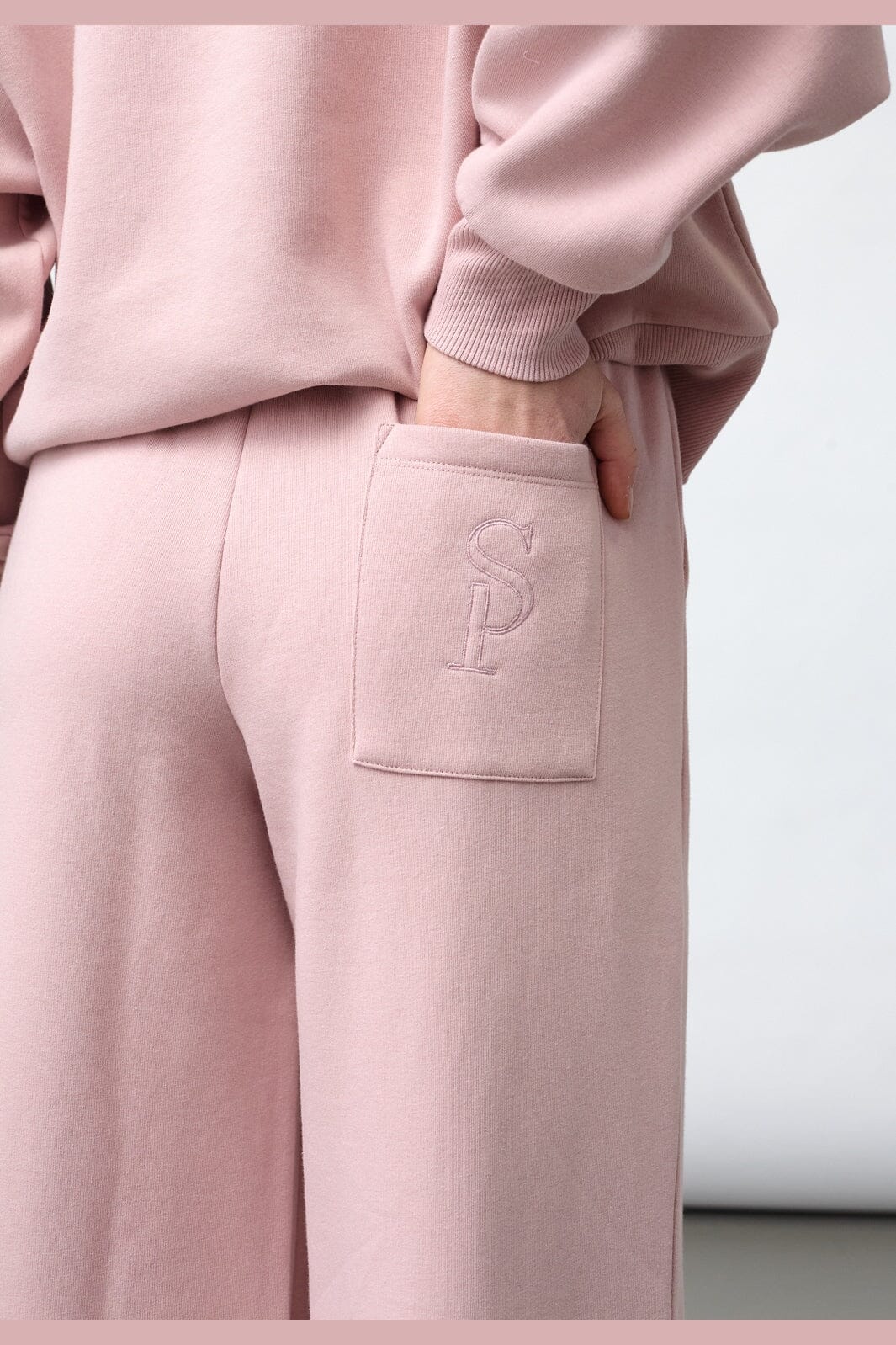 Liilanvaaleanpunaiset housut Sisters Pointilta, joissa on korkea vyötärö ja brodeerattu SP-logo takataskussa. Housuissa on leveälahkeinen malli ja väljä istuvuus.