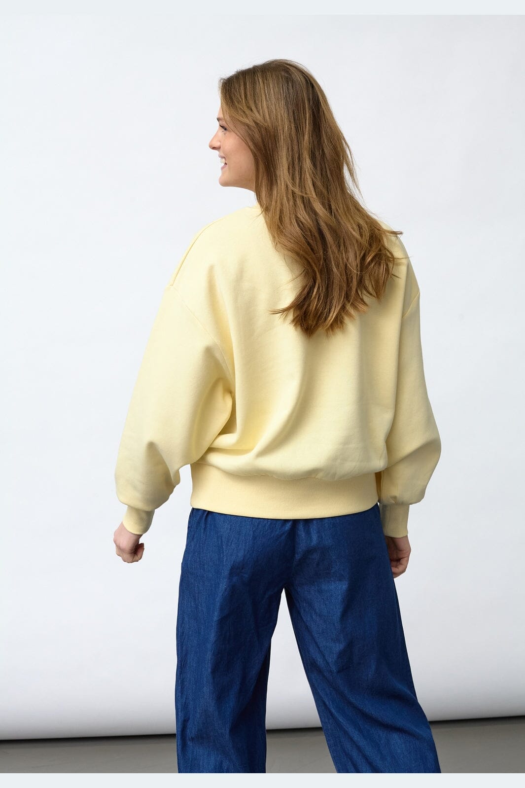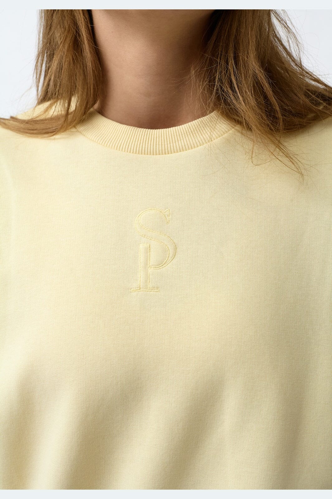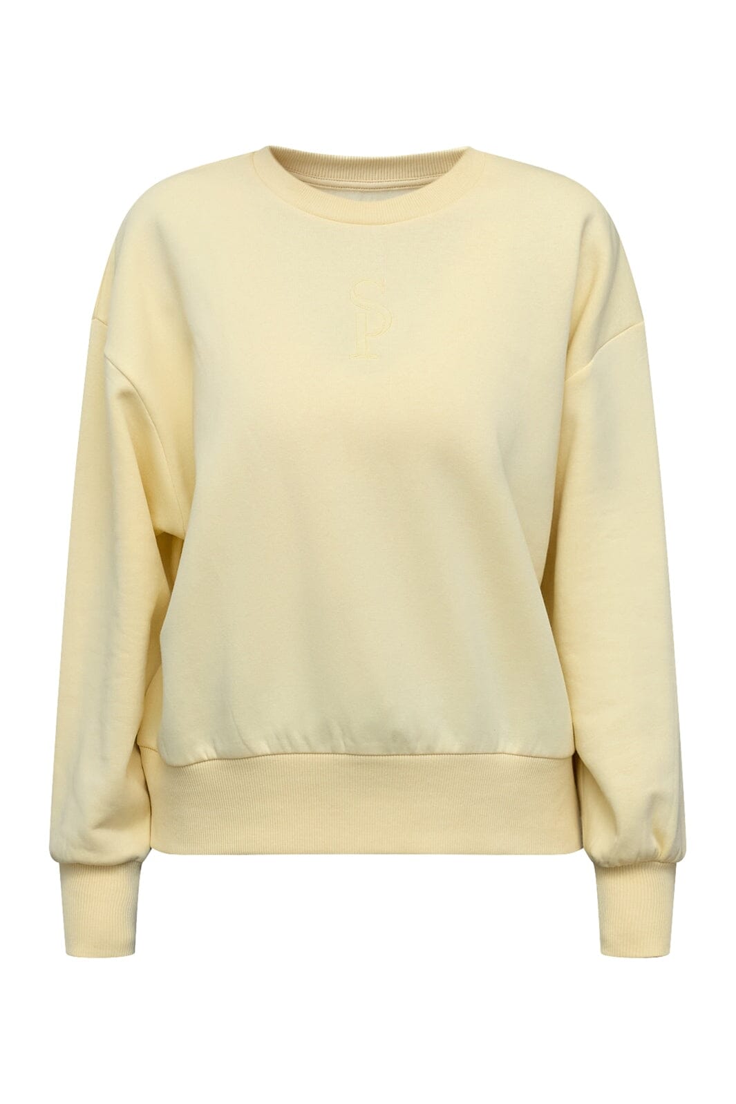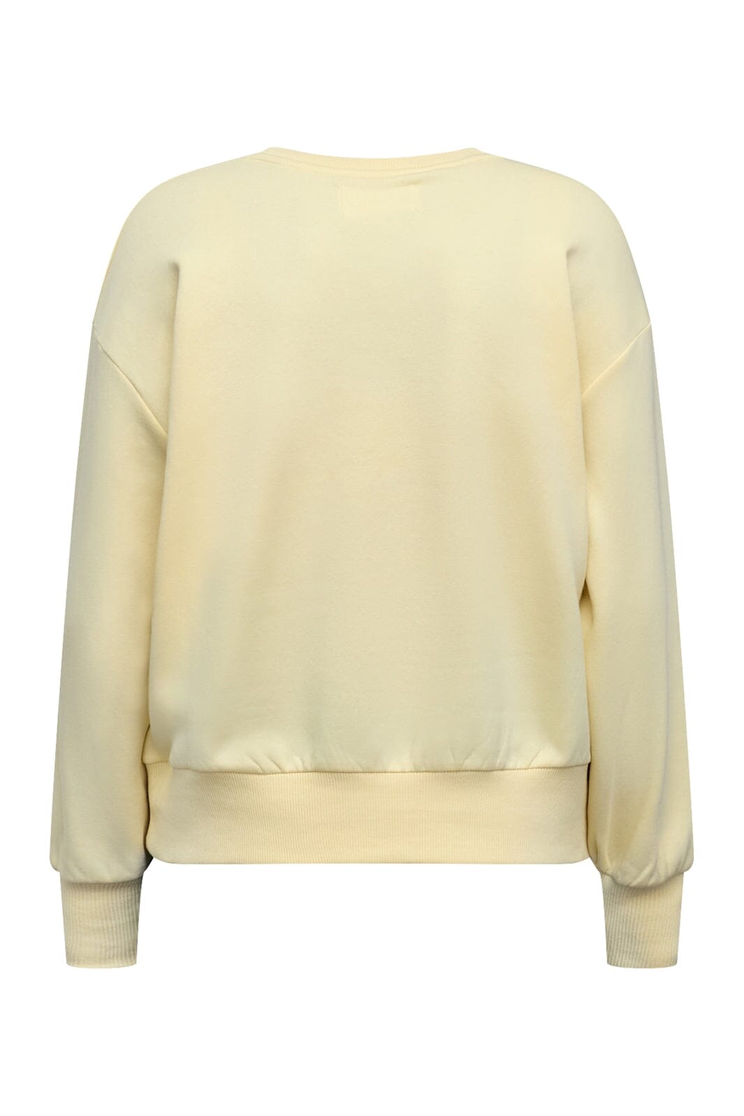 Vaaleankeltainen Sisters Point -collegepaita, valmistettu puuvillasta ja polyesteristä. Collegepaidassa on kirjailtuja yksityiskohtia rinnassa ja oversize-istuvuus.