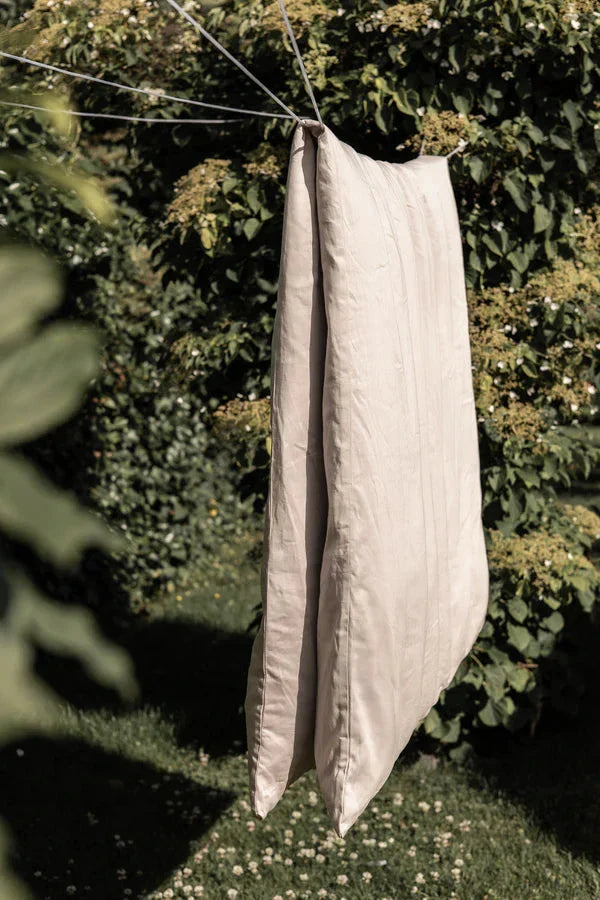 Vuodevaatteet Specktrumilta Power Powder -sävyssä. Tämä setti koostuu sekä tyynyliinoista että peitto- ja pussilakanoista vaaleassa, rauhallisessa sävyssä. Kangas on sileä ja tasainen.