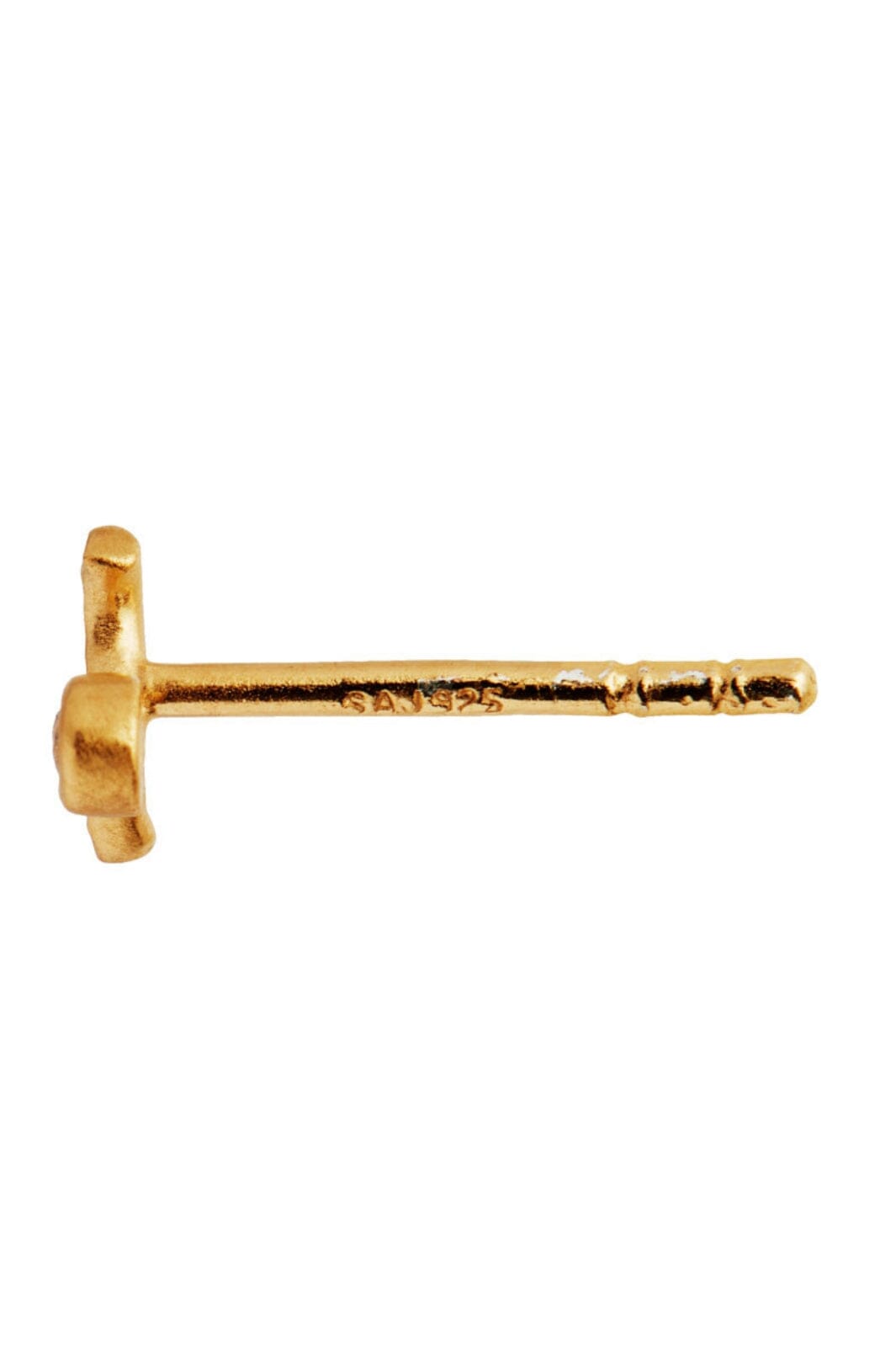 Kultaketju Stine A:lta aalto muotoilulla ja vaaleansinisellä kivellä. Korvakoru on valmistettu 18 karaatin kullatusta sterlinghopeasta, jossa on kevyt kaareva pinta.