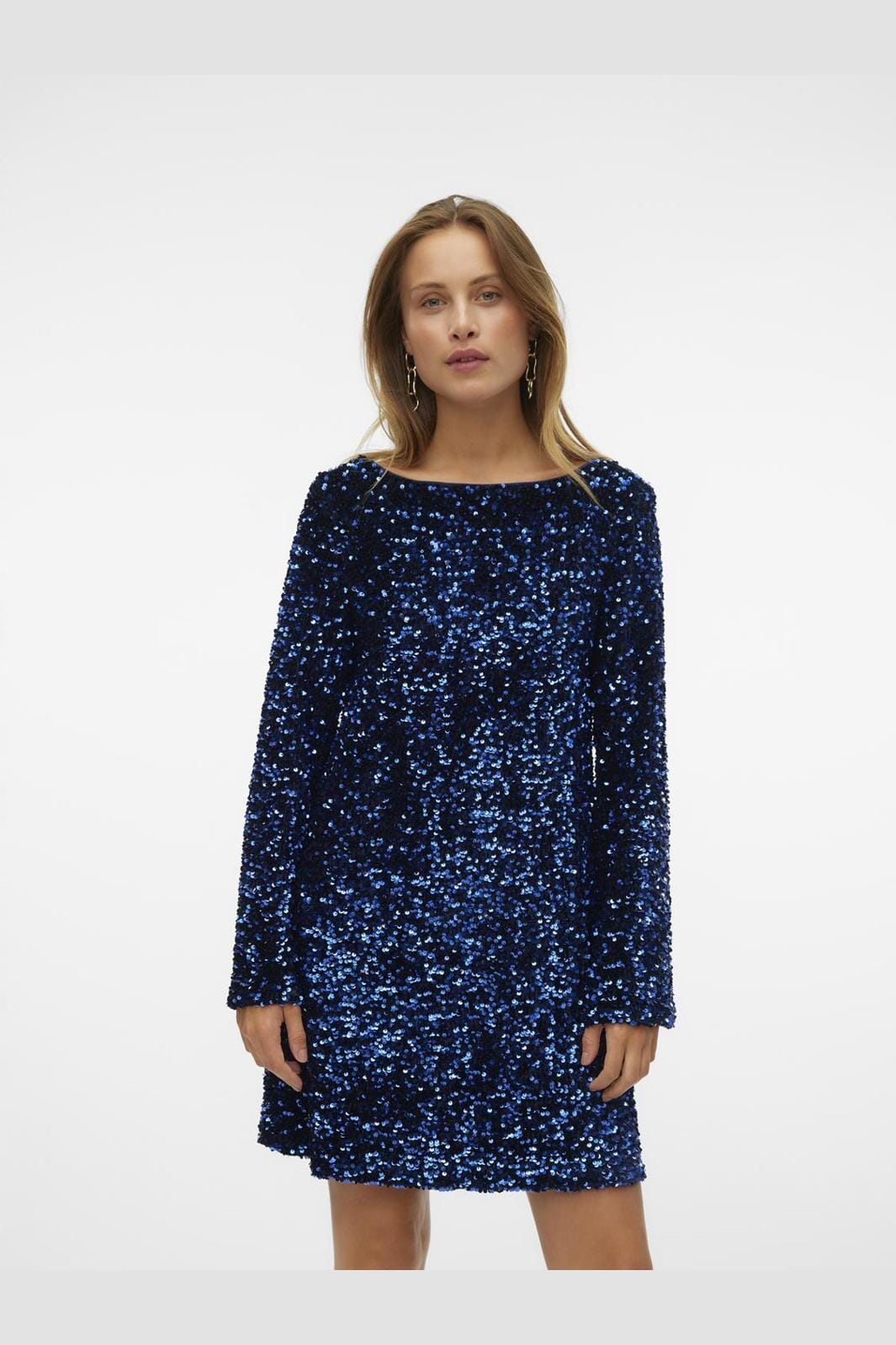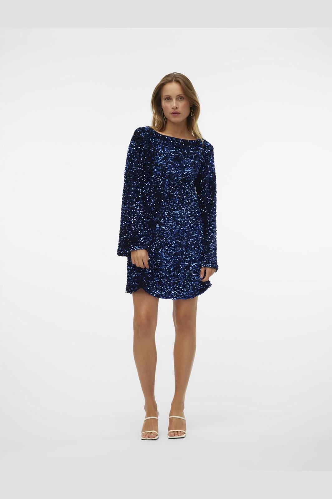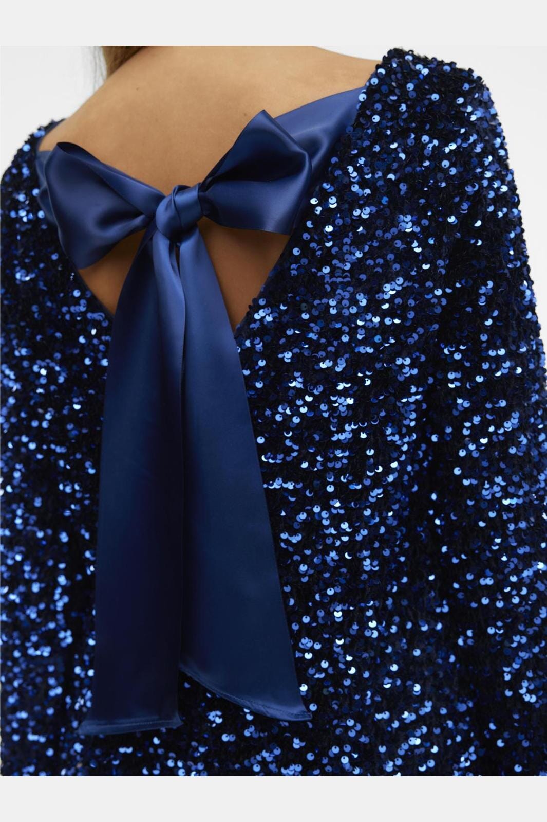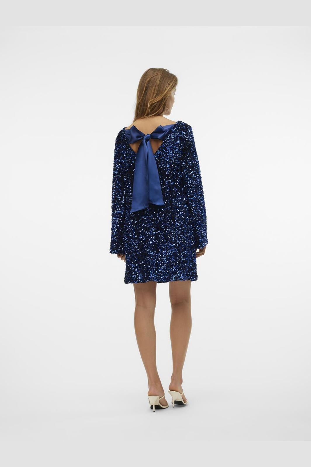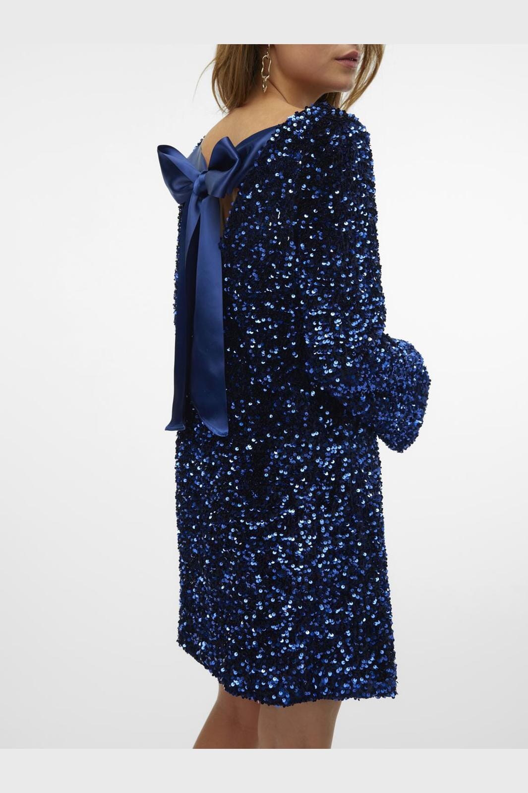 Vero Moda Vmlaila Ls Sequin Bow Dress Väri: 4681341 Midnight Blue