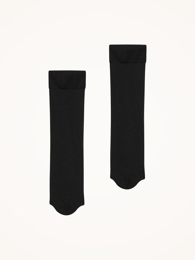 Musta nilkkasukkia Wolfordilta, joissa on 10 denierin paksuus. Sukissa on näkymätön varvassuoja ja pehmeät resorit, jotka tekevät niistä mukavat käyttää.