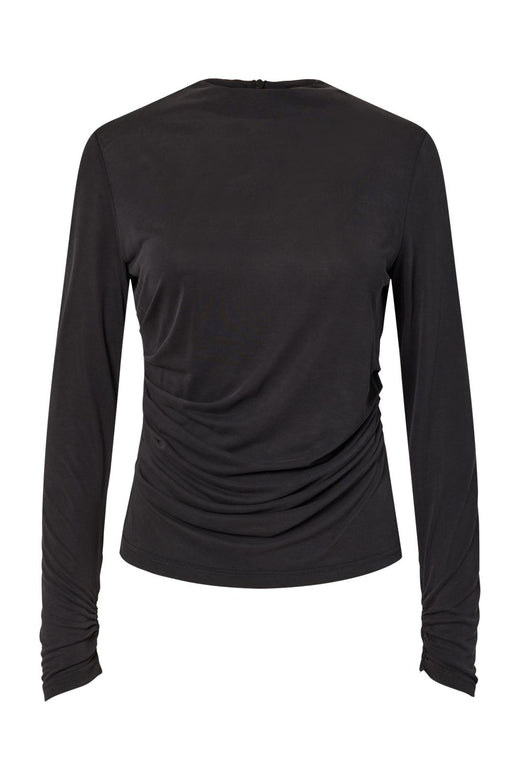 Musta pitkähiha toppi Y. A.S:ltä pyöreällä kaula-aukolla. Topissa on rypytys yksityiskohtia edessä ja regular fit -malli, joka tekee siitä mukavan käyttää.